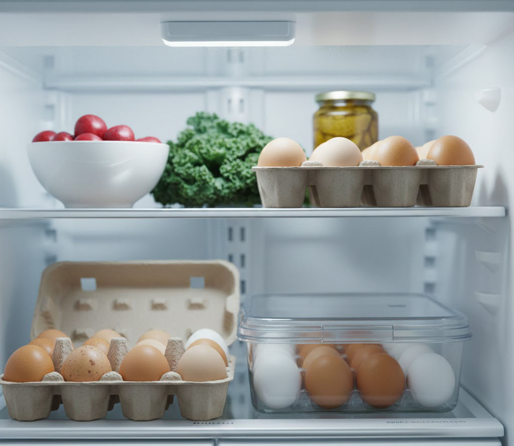 Холодильник, не дверца: Храните яйца в основной части холодильника, где температура наиболее стабильна (оптимально +2°C до +4°C).